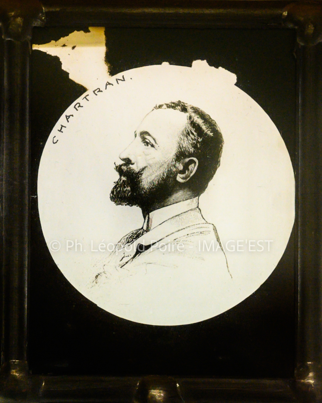 Portrait de Théobald Chartran (1849- 1907). (Extrait du vitrail n°1, ligne 1).