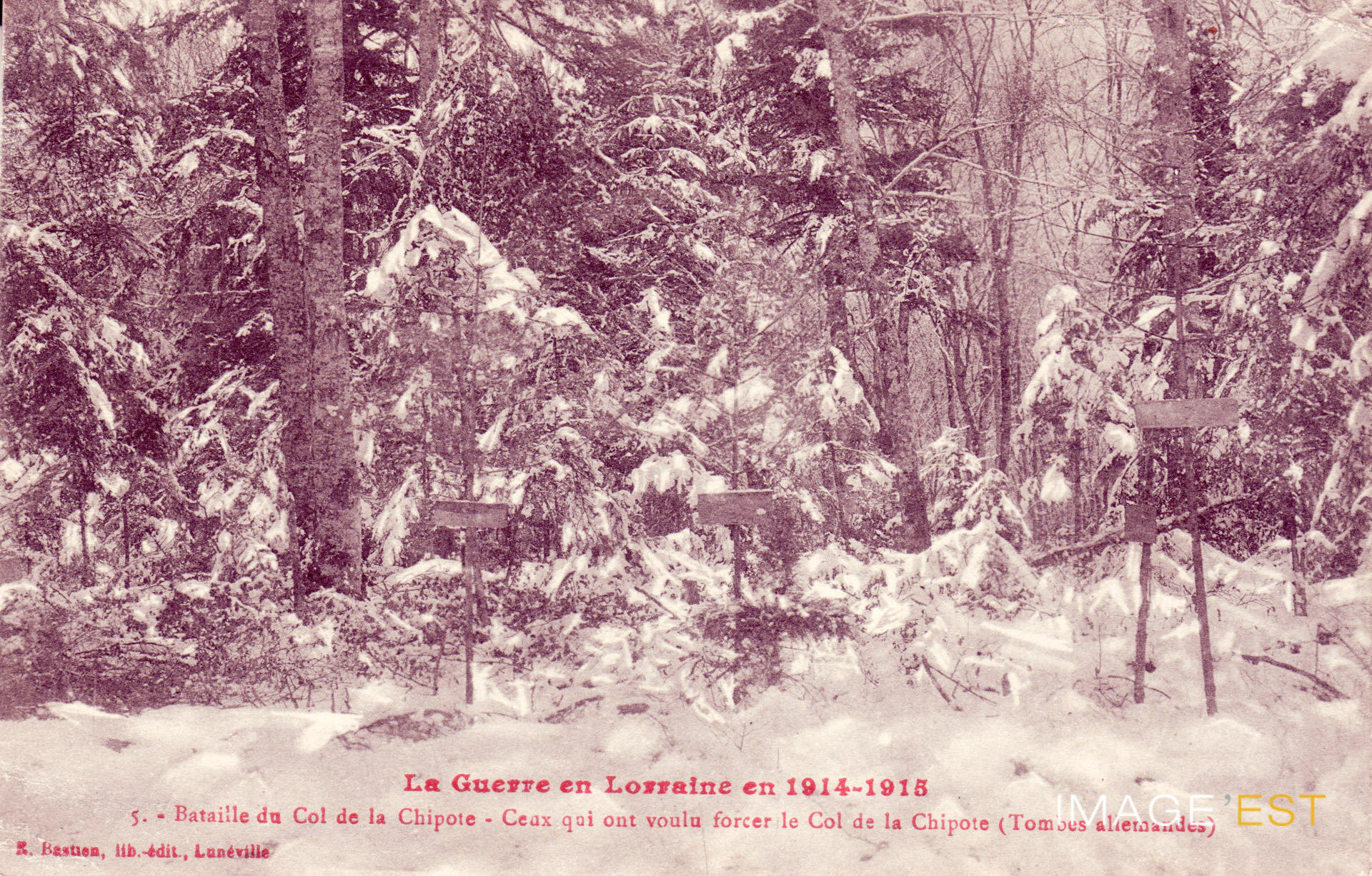 Tombes allemandes au col de la Chipotte à Saint-Benoît-la-Chipotte (Vosges) au cours de la Première Guerre mondiale.