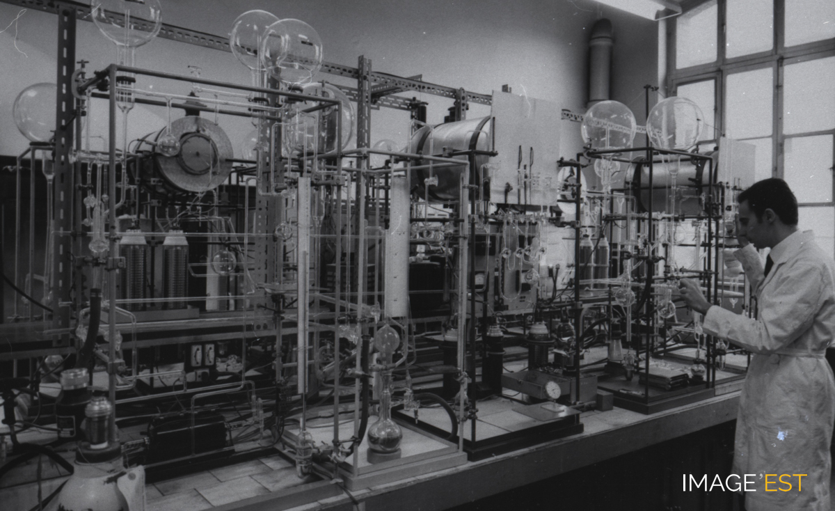 Travaux d'expérimentation dans une salle de l'École nationale supérieure des industries chimiques (ENSIC) de Nancy (Meurthe-et-Moselle).
