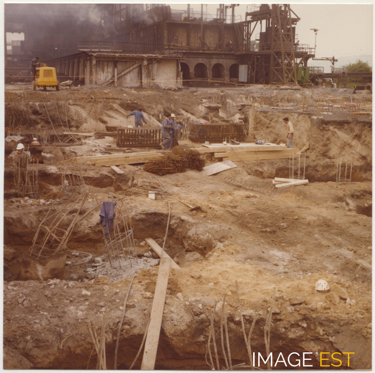 Travaux de Génie civil à Pont-à-Mousson (Meurthe et Moselle) le 23 mai 1979.