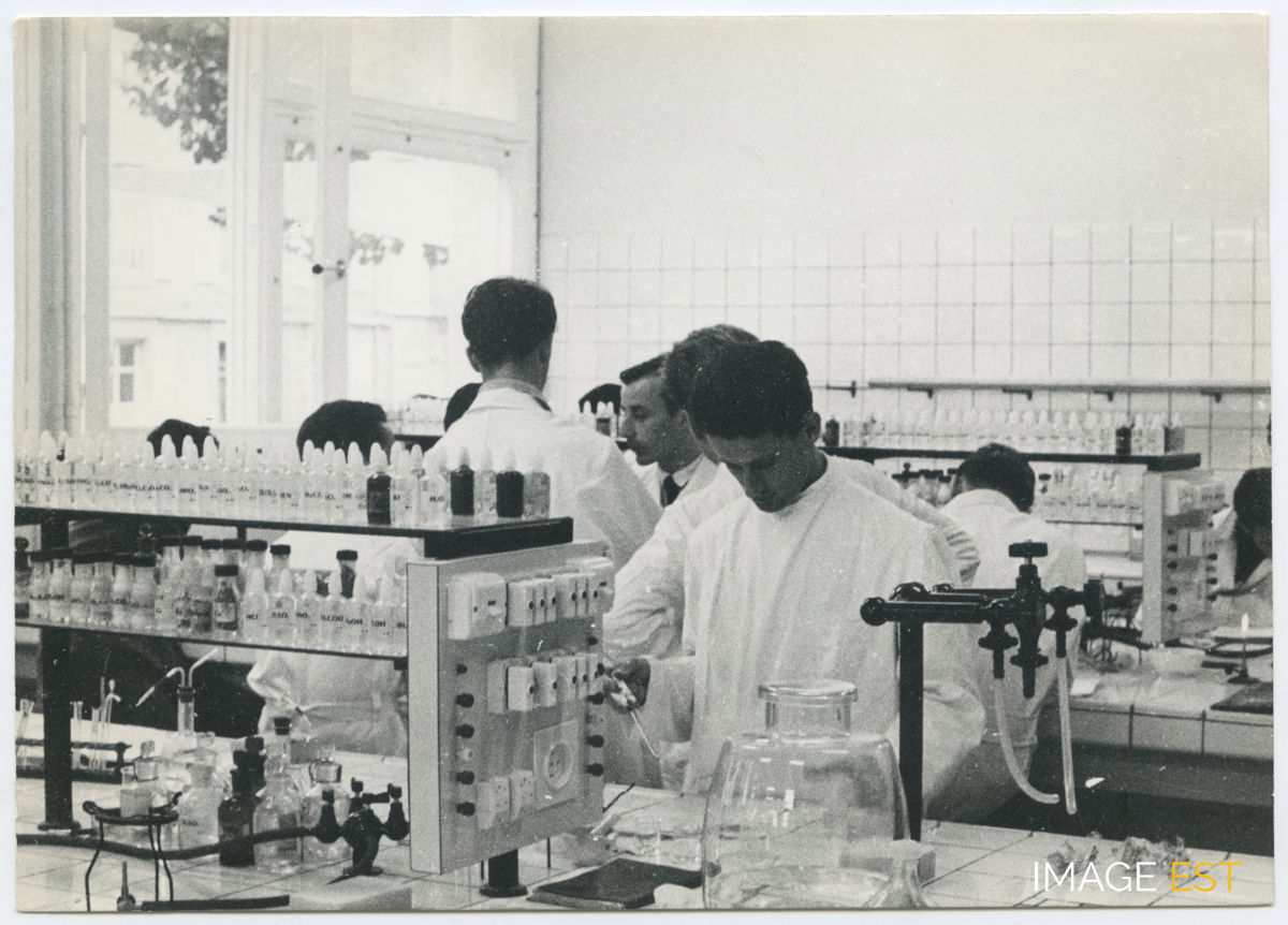 Étudiants en travaux pratiques à l'École nationale supérieure des industries chimiques (ENSIC) à Nancy (Meurthe-et-Moselle).