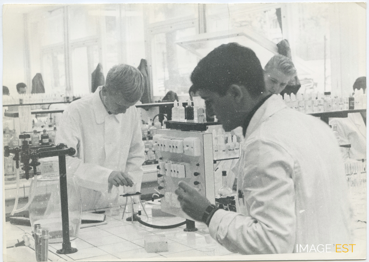 Étudiants en travaux pratiques à l'École nationale supérieure des industries chimiques (ENSIC) à Nancy (Meurthe-et-Moselle).