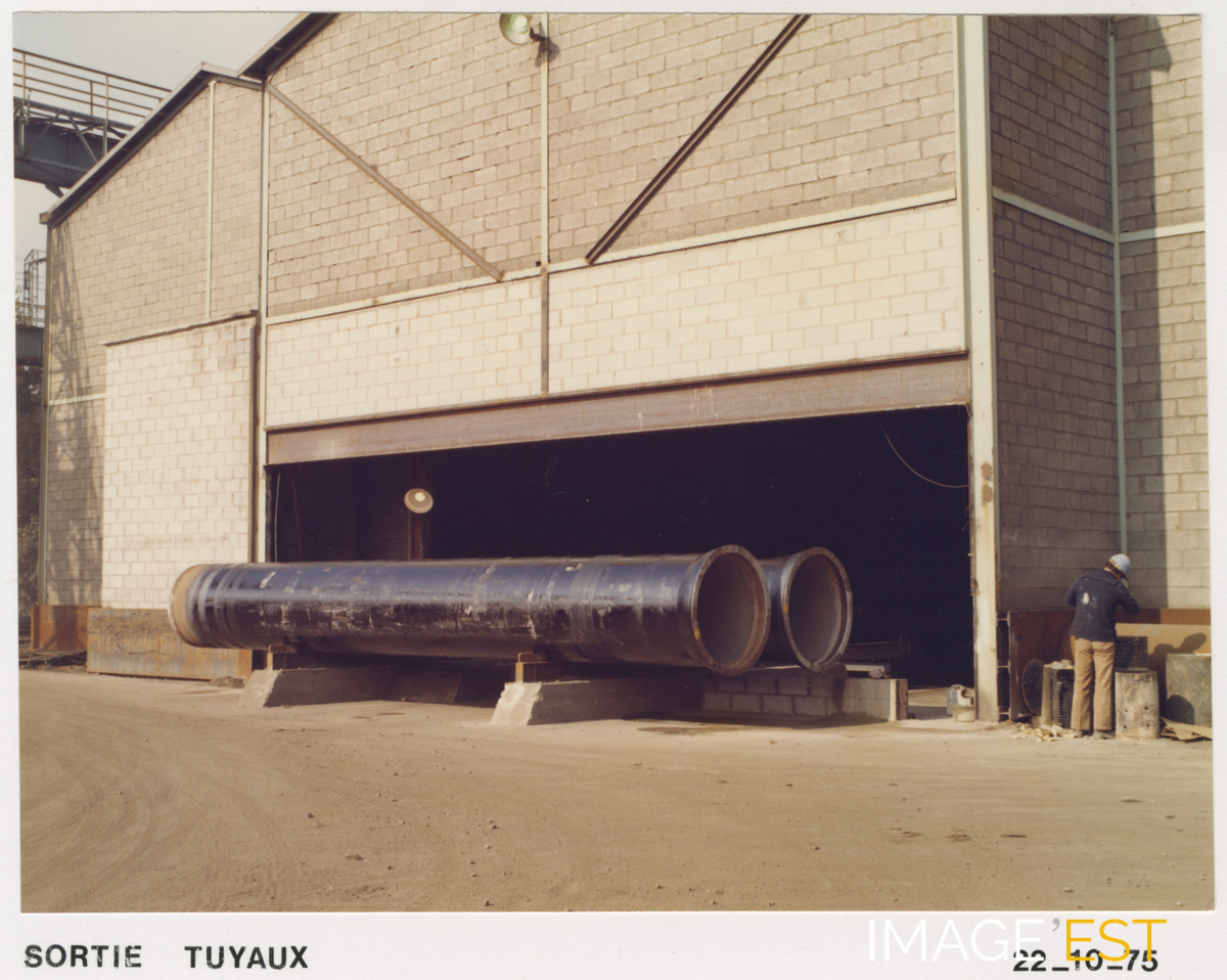 Tuyaux conçus au sein de l'usine de Pont-à-Mousson (Meurthe et Moselle) le 22 octobre 1975.