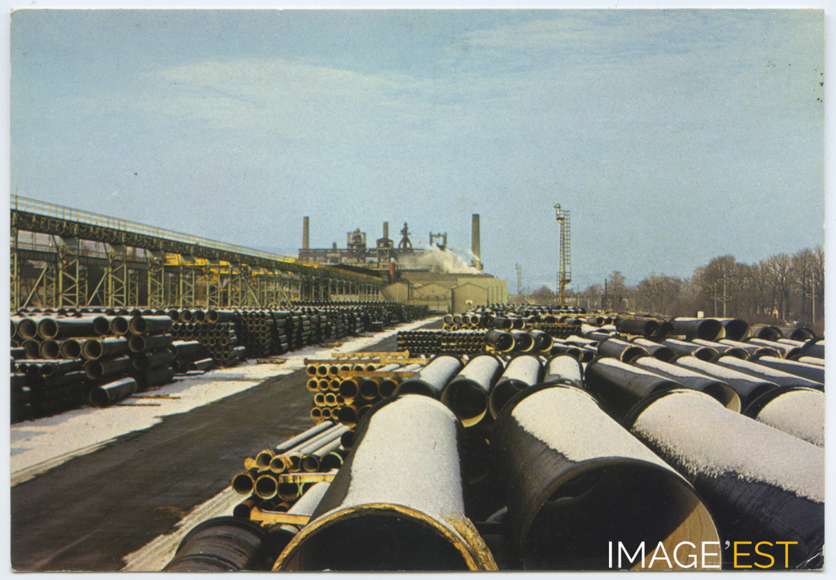 Dépôt de tuyaux en fonte des usines de Pont-à-Mousson (Meurthe et Moselle).