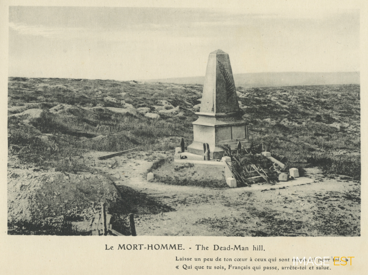 Monument du Mort-Homme. Cliché extrait de l'album, consacré à la bataille de Verdun (1916), intitulé " Verdun & le Champ de bataille " comprenant 32 photographies.