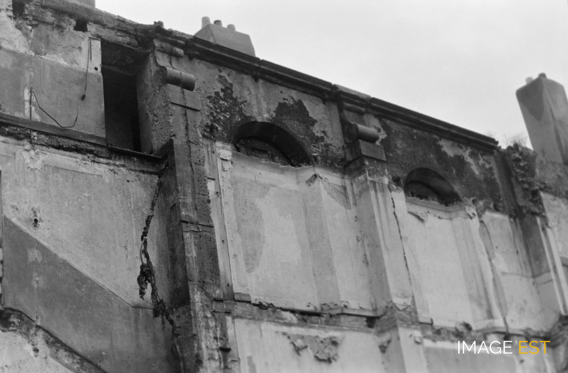 Vestiges de l'église Saint-Livier place Valladier à Metz (Moselle) dont une partie d'un mur de l'église sur lequel repose une colonne en pierre sculptée dont on aperçoit le chapiteau. L'église Saint-Livier, construite au IXe siècle, réaménagée aux XIIIe et XVe siècles, sera abandonnée et transformée en logements après la Révolution française. Elle fut détruite presque entièrement. Saint-Livier fut un soldat messin qui défendit la ville contre Attila au Ve siècle. Il fut fait prisonnier, puis décapité par ses ennemis du christianisme. De nouvelles constructions se dressent de nos jour autour des vestiges de l'édifice dans le quartier du Pontiffroy.