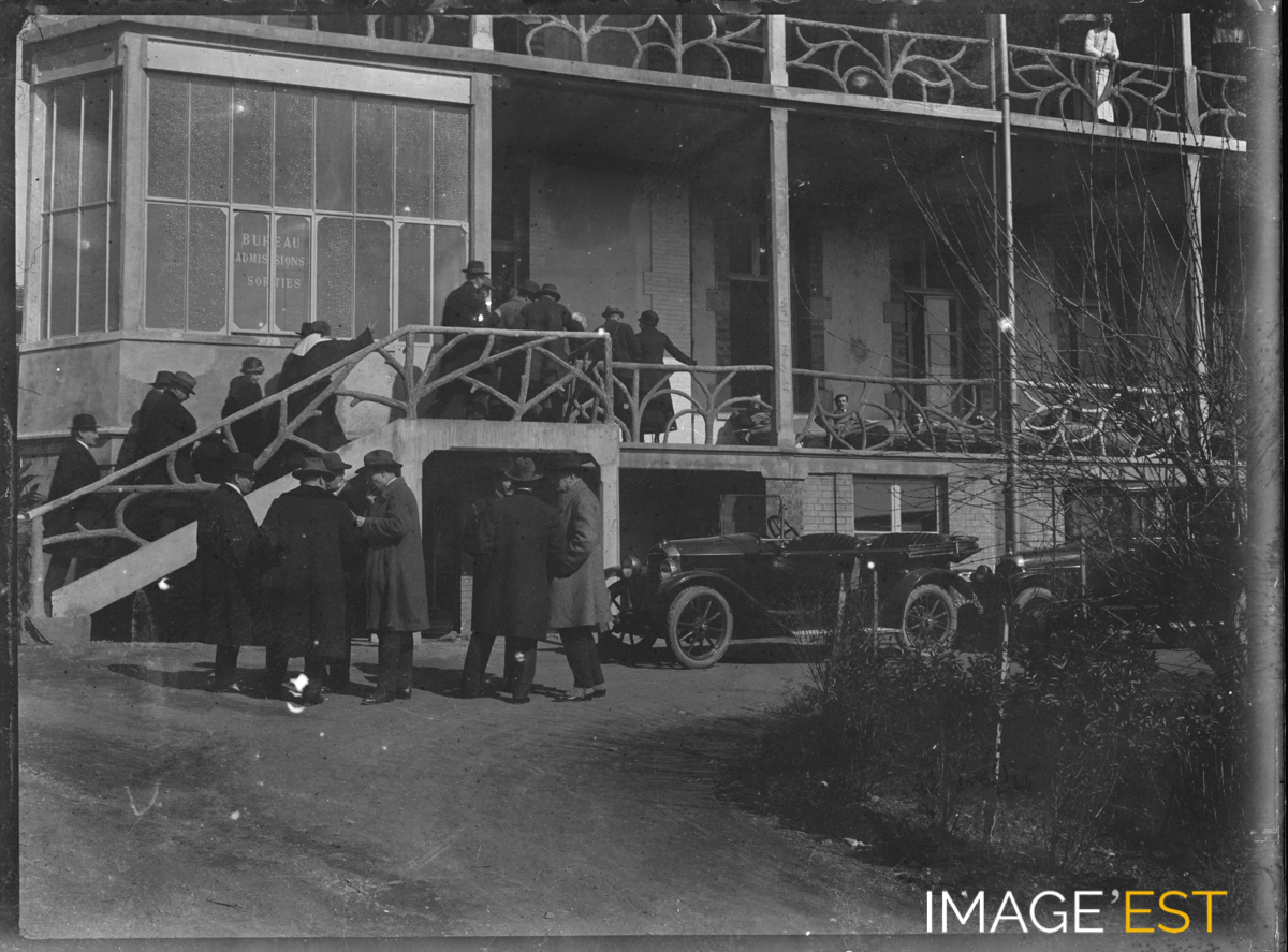 Visite de l'hôpital Villemin (sanatorium) et de la clinique des maladies tuberculeuses à Nancy (Meurthe-et-Moselle). À remarquer la présence de malades alités au premier étage.