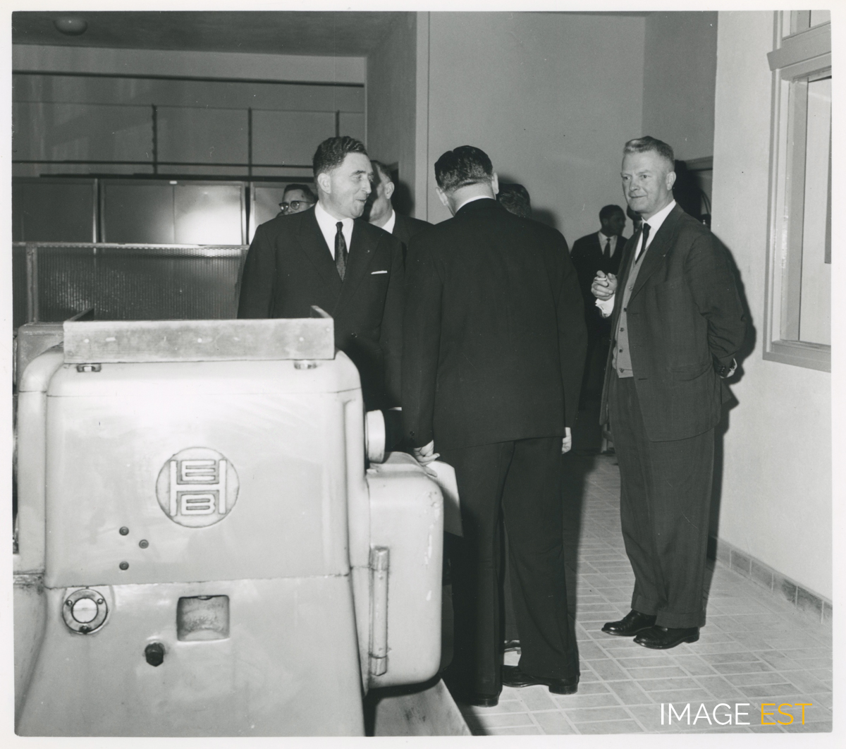 Visite des nouveaux locaux de l'École nationale supérieure des industries chimiques (ENSIC) rue Déglin à Nancy (Meurthe-et-Moselle). Cachet du photographe Charles André (N°24-1167) au verso.