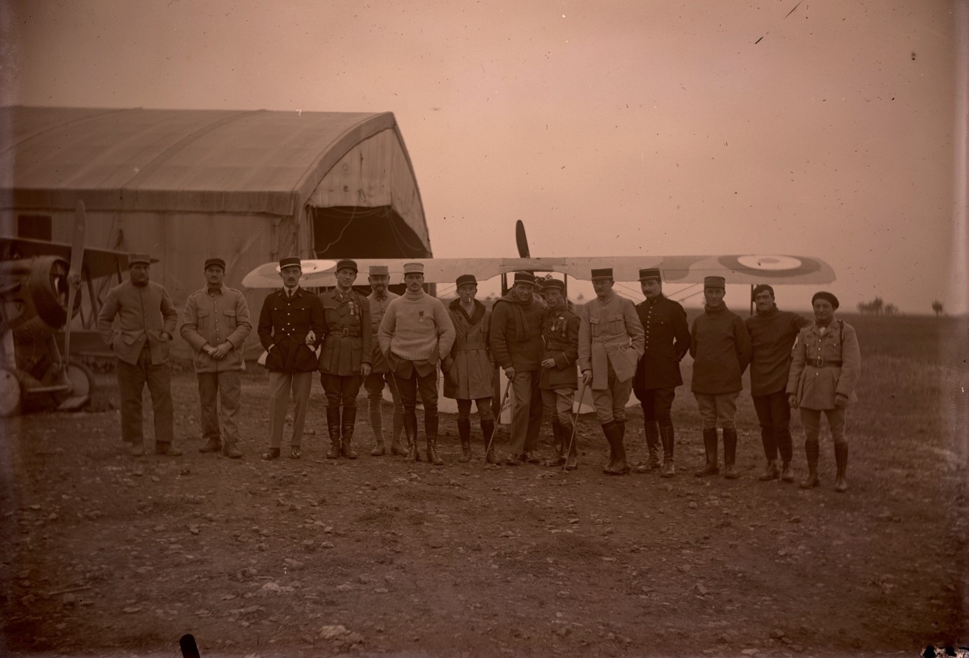 Par contre, plusieurs photos représentent les membres de ces escadrilles Spad 90 et BR 244, (série 39) dotée de Breguet et qui, en 1916, dispose seule de la 18ème Section de Photo-Aérienne. Photographes, dessinateur, pilotes et observateurs, tous ensemble contribuent à créer la reconnaissance à longue portée sur le front de Lorraine. À défaut des croquis militaires, on trouve également dans cette partie du fonds des caricatures que Burtin fait de ses compagnons, Raoul Marius Laronde, le lieutenant Édouard Guillaume, chef de la section et sans doute le capitaine dont le nom est illisible sur le document joint.